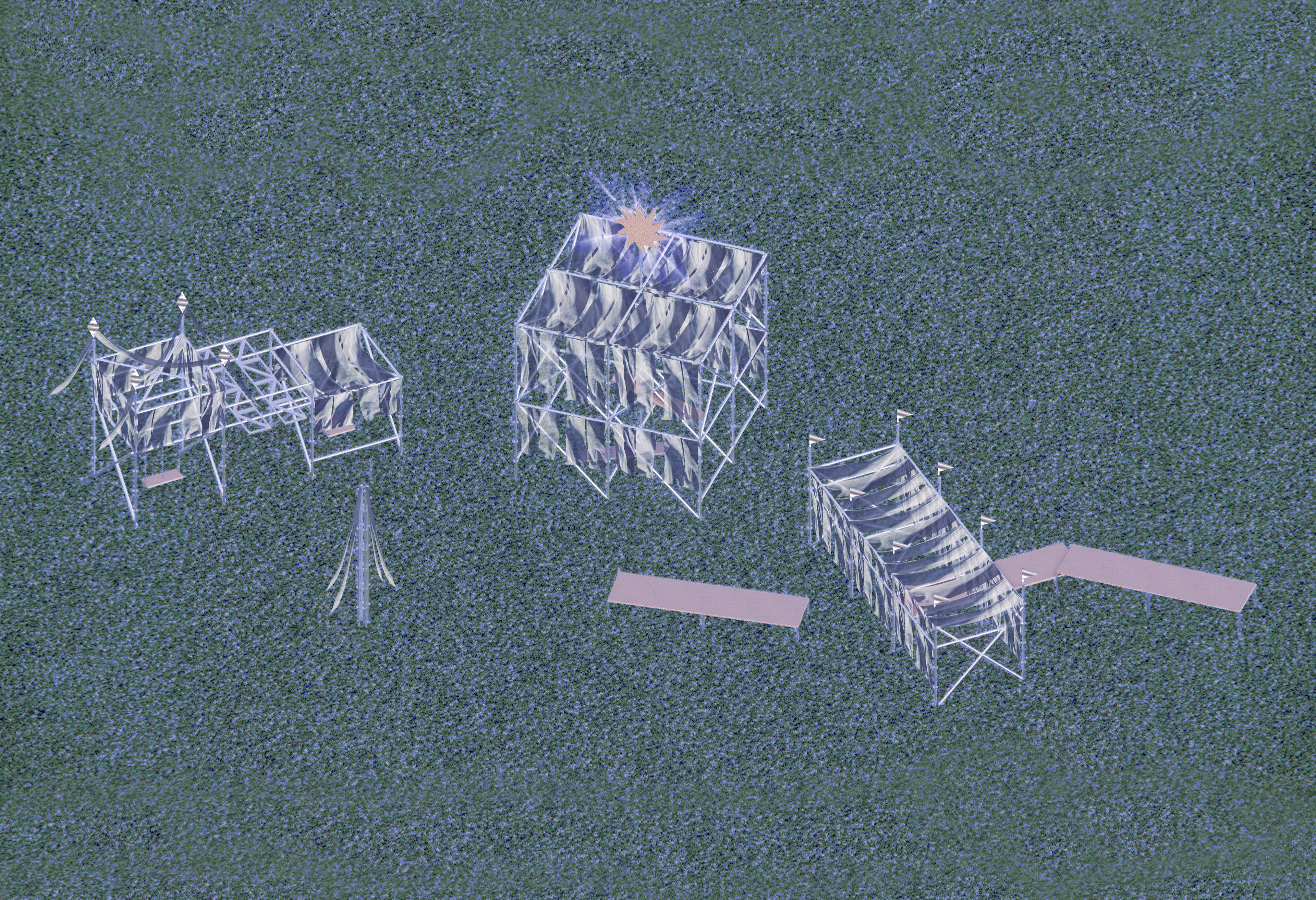 Our three-piece installation invites visitors to rediscover their playful side. Conceived as a small playground within the festival, it offers a space to step away from the noise, to climb, rest, and explore freely. Each part can be approached in its own way, encouraging moments of encounter, laughter, and quiet connection between friends and strangers alike.